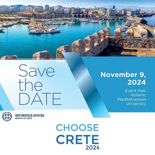 Σε συνέχεια της επιτυχημένης διοργάνωσης του Συνεδρίου «Choose Greece – Choose Crete 2023», ο μη κερδοσκοπικός οργανισμός Olympia Forum πραγματοποιεί το 2ο Συνέδριο «Choose Crete» το Σάββατο 9 Νοεμβρίου 2024 στο Ηράκλειο, Κρήτης, στο Ελληνικό Μεσογειακό Πανεπιστήμιο, με σκοπό να λειτουργήσει ως ετήσιος θεσμός και Παρατηρητήριο Τουρισμού, το οποίο θα συνοψίζει όλα τα απαιτούμενα δεδομένα και πληροφορίες σχετικά με την τουριστική βιομηχανία στη Κρήτη μέσα στο διεθνές γίγνεσθαι της τουριστικής αγοράς και των παραγόντων που επηρεάζουν το μέλλον της.