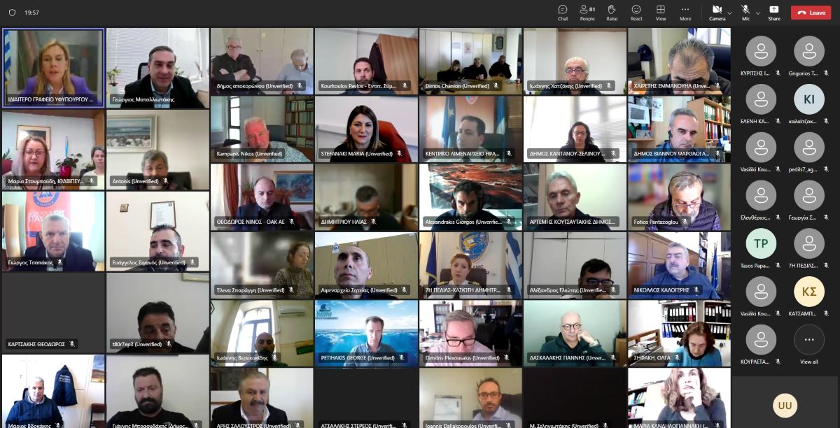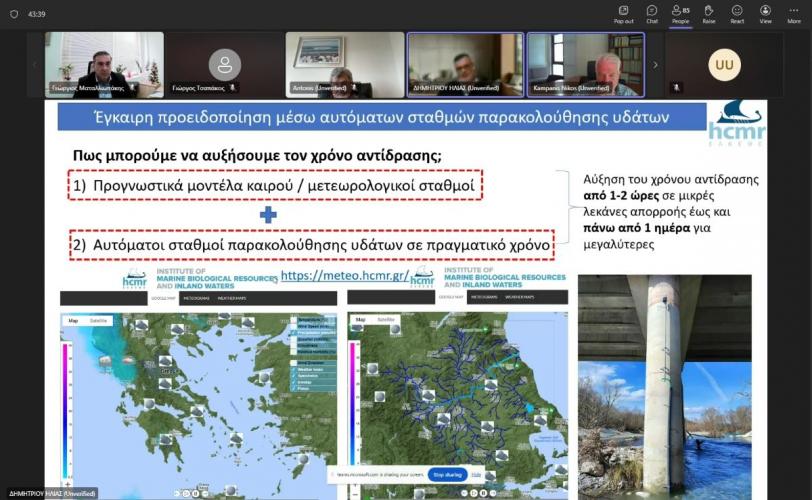 Η διαχείριση των υδάτων και η έγκαιρη προειδοποίηση για επικίνδυνα φαινόμενα αποτέλεσαν το αντικείμενο ευρείας τηλεδιάσκεψης εργασίας, που συνδιοργάνωσαν η Περιφέρεια Κρήτης και το Ελληνικό Κέντρο Θαλάσσιων Ερευνών, με την συμμετοχή της Υφυπουργού Ανάπτυξης Ζωής Ράπτη και εκπροσώπους από όλους τους δήμους του νησιού, από τα πανεπιστήμια και από φορείς που σχετίζονται με την Πολιτική Προστασία.