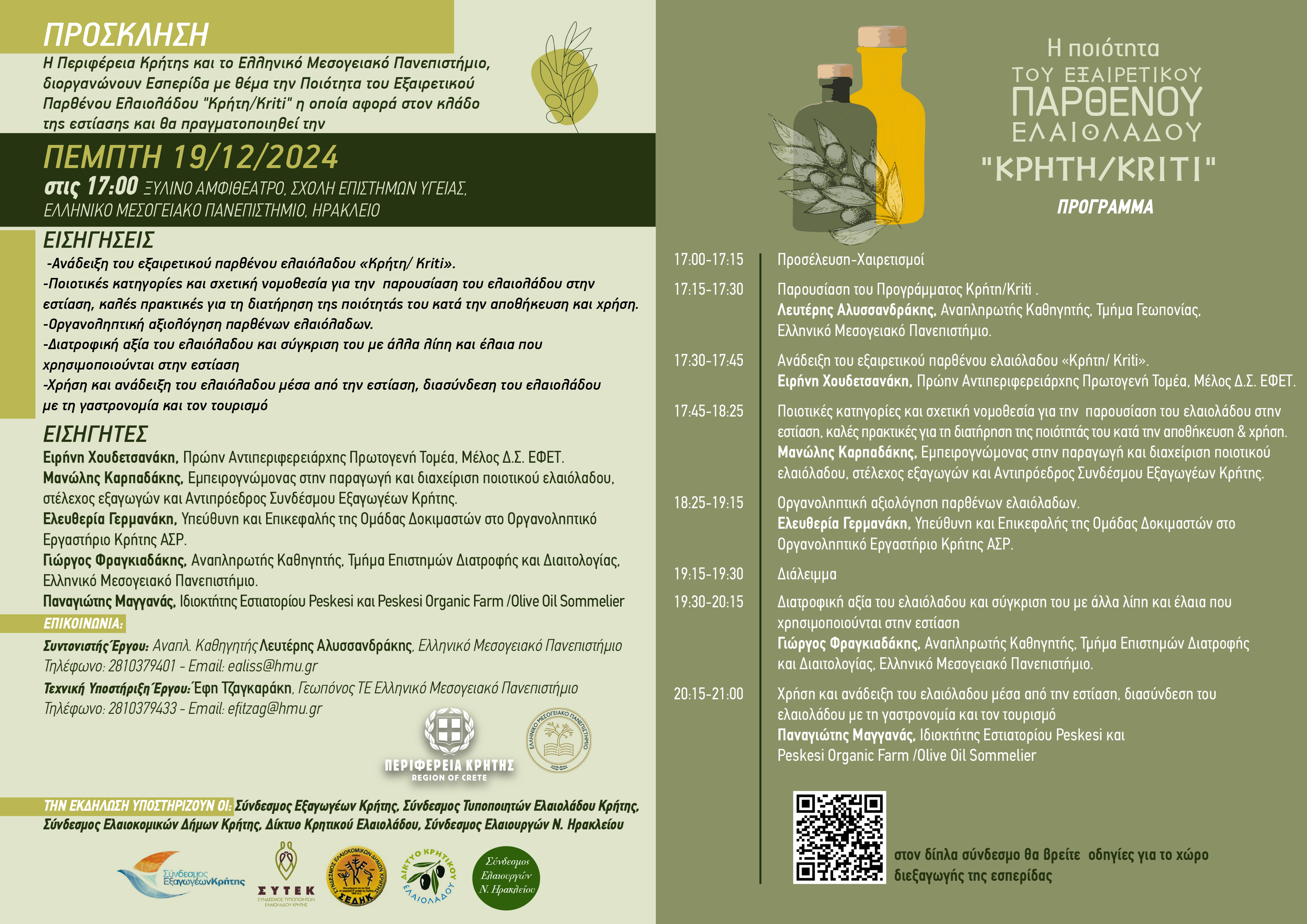 Ομιλητές της εκπαίδευσης στο Ηράκλειο στις 19 Δεκεμβρίου θα είναι:
