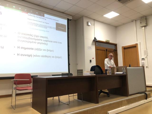 Επίτιμος προσκεκλημένος ήταν ο Ομότιμος Καθηγητής Ιατρικής κ. Χρήστος Λιονής, ο οποίος ανέδειξε τη σύνδεση μεταξύ της ιατρικής και της παιδαγωγικής επιστήμης. Στην ομιλία του, ο κ. Λιονής έδωσε έναν διαυγή ορισμό της συμπόνιας, σημειώνοντας ότι «συμπόνια είναι να υποφέρεις μαζί με τον άλλο και να επιθυμείς να δώσεις ανακούφιση στον πόνο του». Επιπλέον, τόνισε ότι η άσκηση τόσο της ιατρικής όσο και της παιδαγωγικής αποτελεί «πηγή χαράς για αυτόν που την ασκεί», υπογραμμίζοντας πως «η ικανοποίηση που αντλούμε όταν μειώνουμε τη θλίψη ενός μαθητή ή ενός ασθενή έχει θετικό αντίκτυπο και σε εμάς τους ίδιους».
