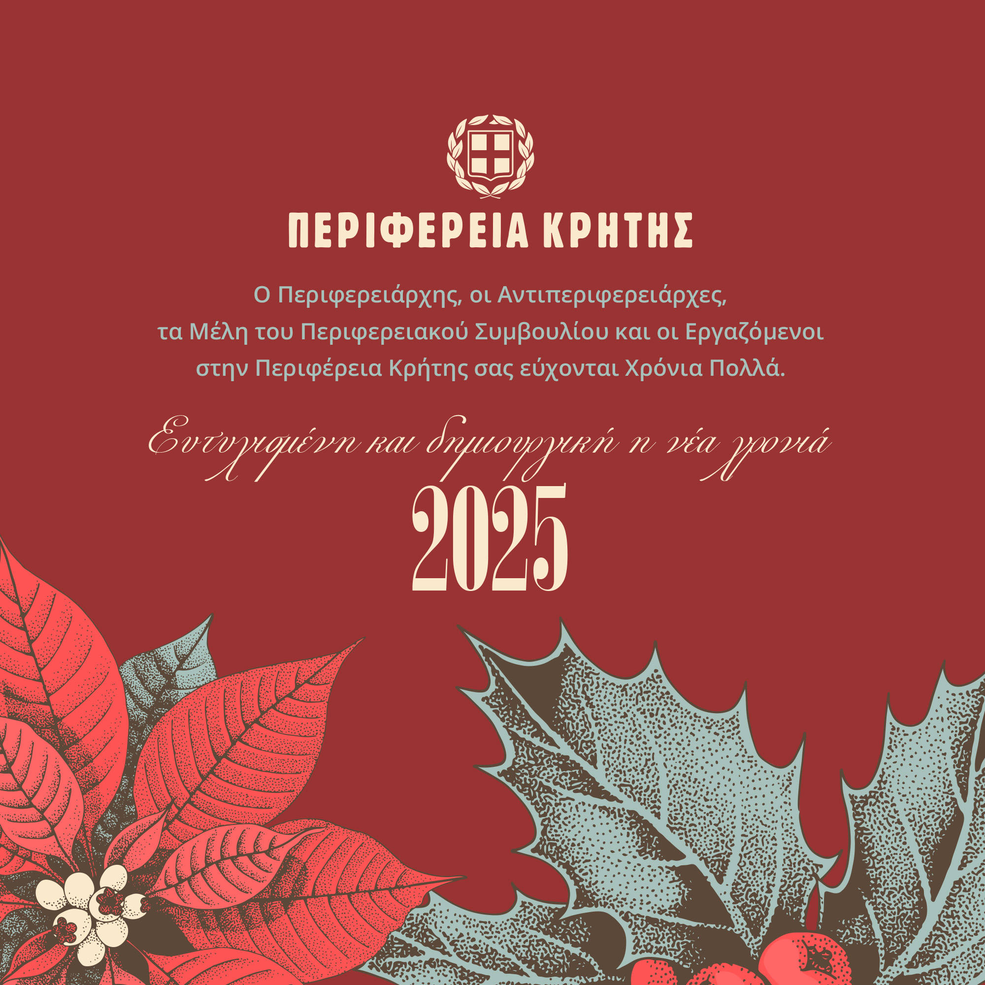 Σε όλους τους Κρητικούς, στους απόδημους Κρητικούς, ανά τον κόσμο θερμές ευχές για καλές γιορτές.