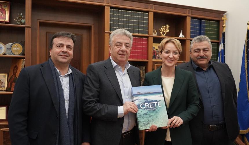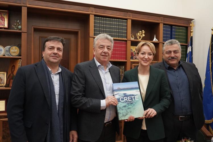 Προηγήθηκε επίσκεψη στην Περιφέρεια Κρήτης της Υπουργού και ενημερωτική συνάντηση με τον Περιφερειάρχη, τον Αντιπεριφερειάρχη Χανίων Νίκο Καλογερή, αρμόδιο για τα ενεργειακά θέματα, τον Αντιπεριφερειάρχη Ηρακλείου Νίκο Συριγωνάκη και στελέχη του Υπουργείου Ενέργειας.