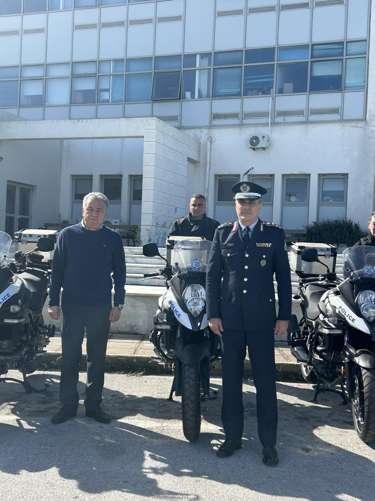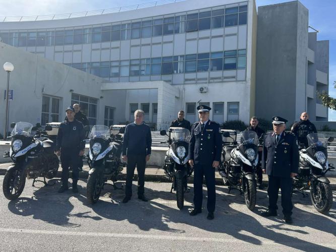 Η Διεύθυνση Αστυνομίας Ηρακλείου παρέλαβε ως δωρεά από την Περιφέρεια Κρήτης, πέντε (5) δίκυκλες μοτοσυκλέτες. Τα οχήματα αυτά πρόκειται να προστεθούν στο στόλο της Διεύθυνσης Αστυνομίας Ηρακλείου με στόχο την περαιτέρω ενίσχυση της επιχειρησιακής ετοιμότητας και ανταπόκρισης των δικυκλιστών αστυνομικών στην πόλη του Ηρακλείου.