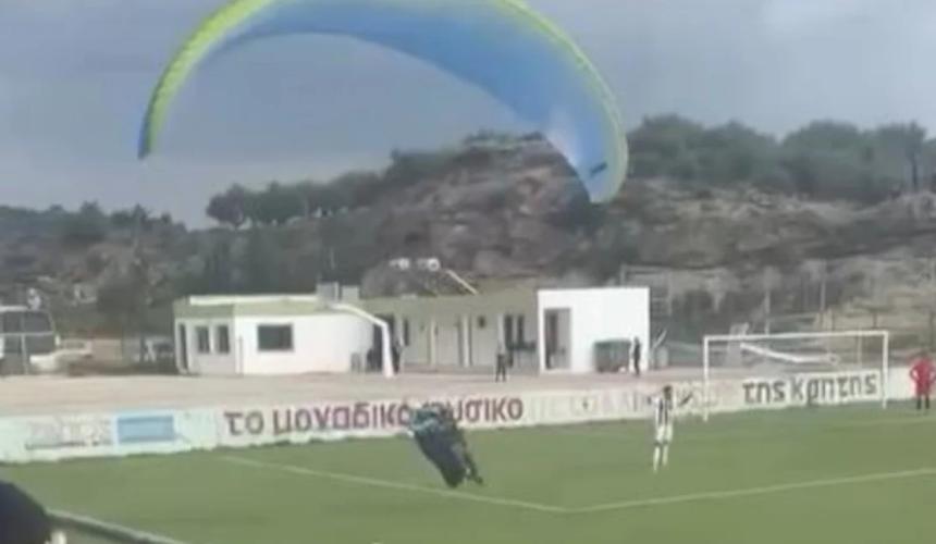 Την ώρα που η αναμέτρηση βρισκόταν σε εξέλιξη, ένας αλεξιπτωτιστής εμφανίστηκε ξαφνικά από τον ουρανό και προσγειώθηκε μέσα στον αγωνιστικό χώρο, αφήνοντας άφωνους παίκτες, διαιτητές και φιλάθλους!