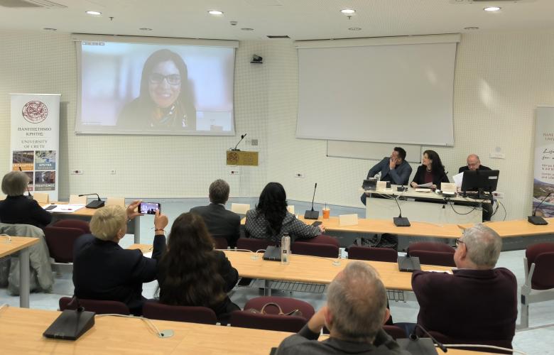 Από την πλευρά τους η καθηγήτρια Μαρία Βαμβακάκη, Αντιπρύτανης Ακαδημαϊκών Υποθέσεων, Δια Βίου Μάθησης και Ερευνητικής Πολιτικής του Πανεπιστημίου Κρήτης, ο καθηγητής Γιώργος Κοσιώρης, μέλος του Συμβουλίου Διοίκησης του Πανεπιστημίου Κρήτης, πρ. Αντιπρύτανης και Πρόεδρος του ΚΕΔΙΒΙΜ του Πανεπιστημίου Κρήτης και η καθηγήτρια Σοφία Σχίζα, Αντιπρύτανης Διοικητικών Υποθέσεων και Φοιτητικής Μέριμνας του Πανεπιστημίου Κρήτης, στους χαιρετισμούς τους ευχαρίστησαν την Περιφέρεια Κρήτης, τον Περιφερειάρχη Σταύρο Αρναουτάκη, για την συνεχή στήριξη και συνεργασία προς τα Εκπαιδευτικά και Ερευνητικά Ιδρύματα του νησιού.