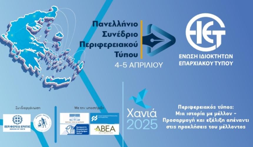 Με την παρουσία δεκάδων εκδοτών από ολόκληρη τη χώρα θα πραγματοποιηθεί το διήμερο 4-5 Απριλίου στα Χανιά (Κέντρο Αρχιτεκτονικής της Μεσογείου) το Πανελλήνιο Συνέδριο εβδομαδιαίου Περιφερειακού Τύπου.