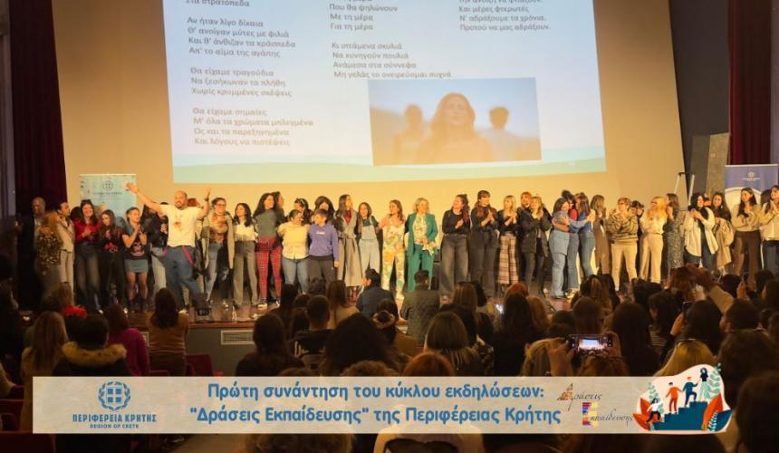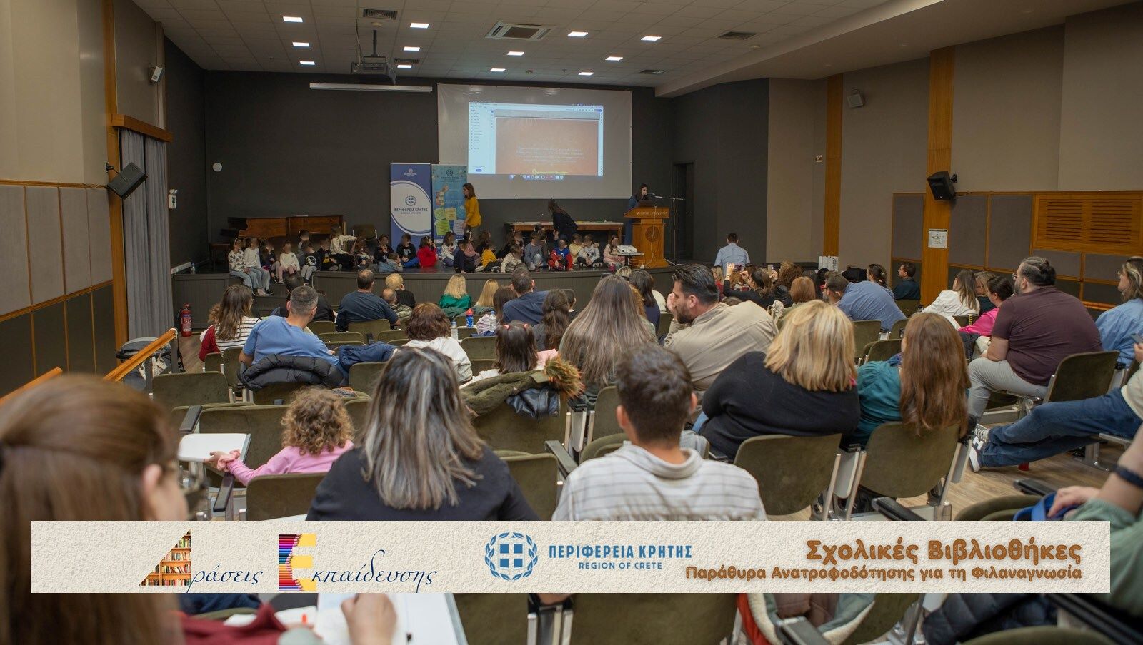 Με μεγάλη επιτυχία και ευρεία συμμετοχή της εκπαιδευτικής κοινότητας ολοκληρώθηκε ο κύκλος των «Δράσεων Εκπαίδευσης» που διοργάνωσε η Περιφέρεια Κρήτης από τις 22 Μαρτίου έως και τις 2 Απριλίου 2025, σε συνεργασία με τους Συλλόγους Εκπαιδευτικών Πρωτοβάθμιας Εκπαίδευσης Ηρακλείου «Δομήνικος Θεοτοκόπουλος», «Νίκος Καζαντζάκης», «Φαιστός» και την ΕΛΜΕ Ηρακλείου.