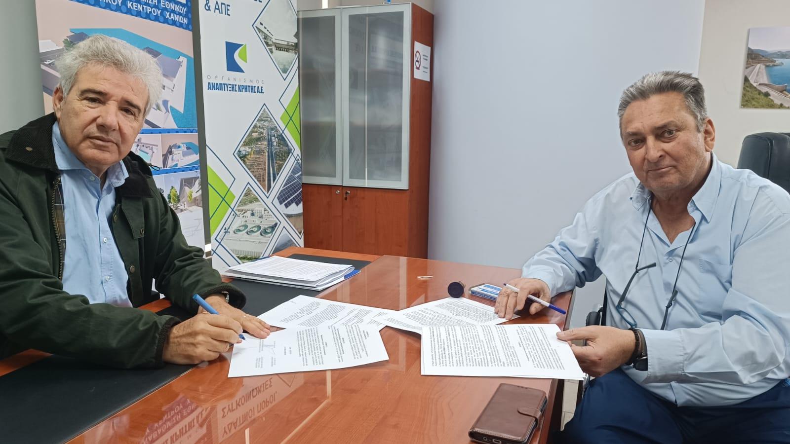 Αμέσως μετά, ακολούθησε η υπογραφή της σύμβασης – διάρκειας ενός (1) έτους – με τον Τοπικό Οργανισμό Εγγείων Βελτιώσεων Φουρνέ του Δήμου Πλατανιά και τον προέδρου του, κ. Χαράλαμπο Γιαννακάκη.