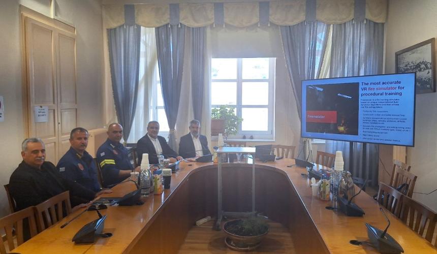 Συνάντηση εργασίας στην αίθουσα συνεδριάσεων της Αντιπεριφέρειας Ρεθύμνου είχε χθες ο Αντιπεριφερειάρχης Επιχειρηματικότητας, κ. Μιχάλης Βάμβουκας με τον Ιδρυτή και CEO της Εταιρείας «Realiscape», κ. Σπύρο Αγοργιανίτη, παρουσία του Ειδικού Συμβούλου του Υπουργού Κλιματικής Αλλαγής και Πολιτικής Προστασίας Γιάννη Κεφαλογιάννη, κ. Γιώργου Λουτριανάκη και του Διοικητή των Πυροσβεστικών Υπηρεσιών Νομού Ρεθύμνου, κ. Νίκου Ζανιδάκη.