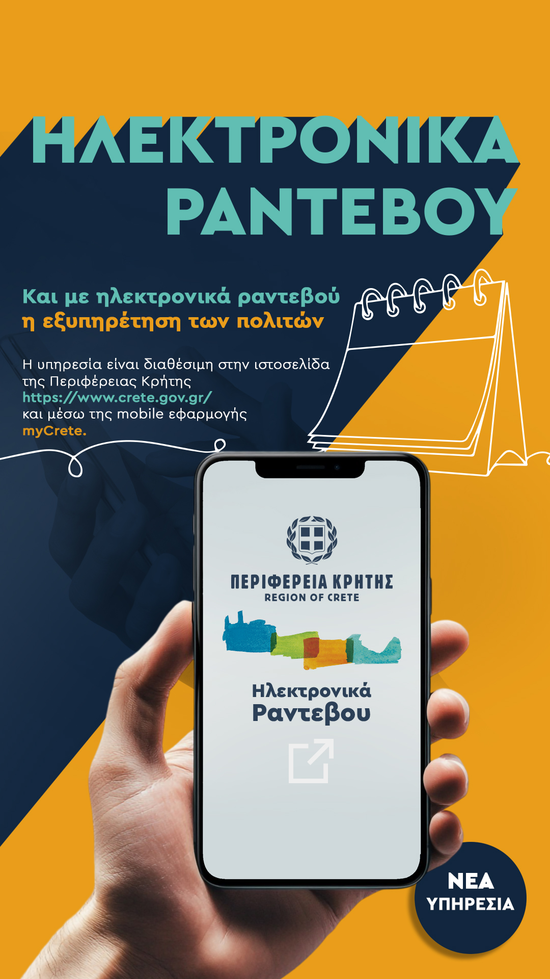 Η εφαρμογή των ηλεκτρονικών ραντεβού που τέθηκε σε πλήρη λειτουργία, αποτελεί μέρος του συνολικού σχεδιασμού για τον Ψηφιακό Μετασχηματισμό της Περιφέρειας Κρήτης, με κύριο στόχο τη βελτίωση των παρεχόμενων υπηρεσιών προς τους Πολίτες.