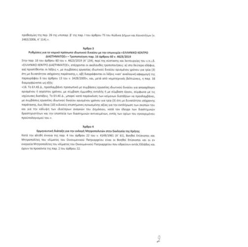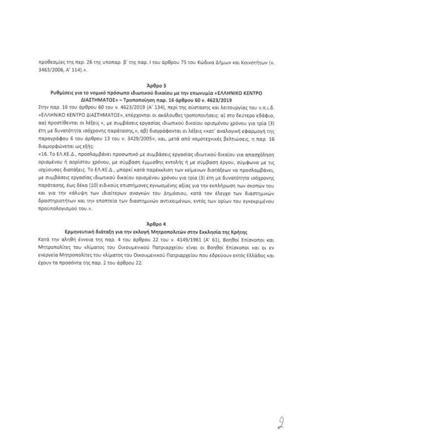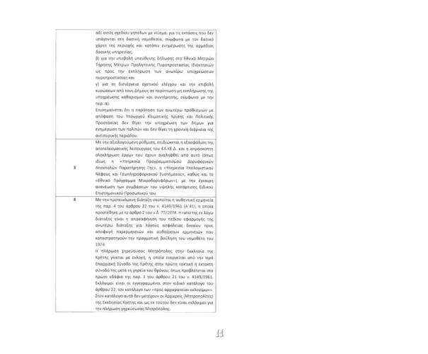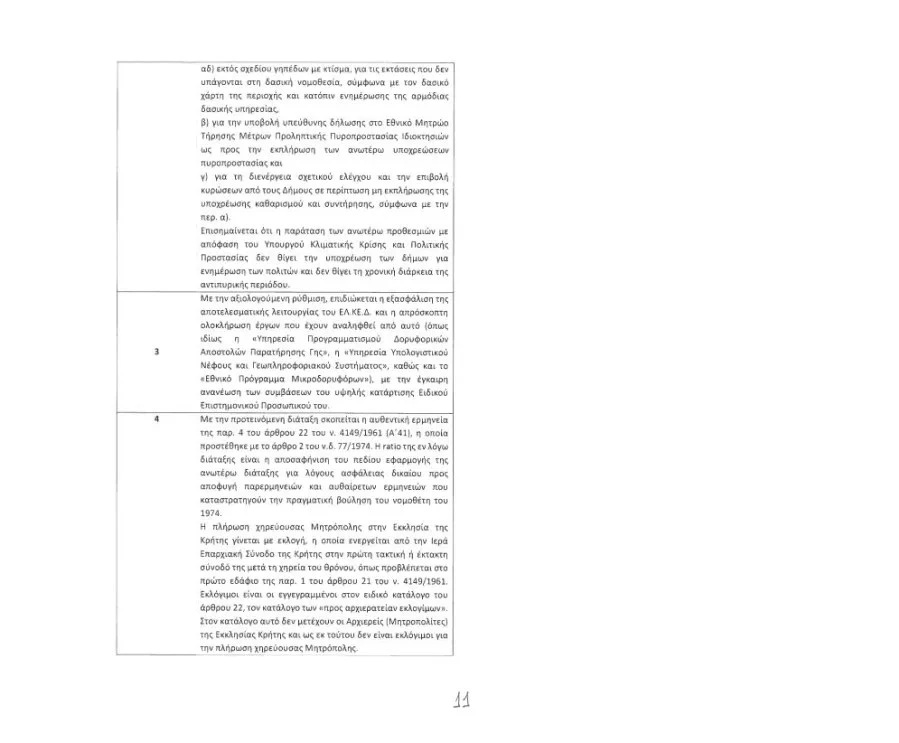 Στο άρθρο τέσσερα «Ερμηνευτική διάταξη για εκλογή Μητροπολιτών στην Εκκλησία Κρήτης», αναφέρεται: «Κατά αληθή έννοια παρ. 4 του άρθρου 22 του ν. 4149/1961 (Α’ 61), Βοηθοί Επίσκοποι και Μητροπολίτες του κλίματος του Οικουμενικού Πατριαρχείου είναι οι Βοηθοί Επίσκοποι και οι ενεενεργεία Μητροπολίτες του κλίματος του Οικουμενικού Πατριαρχείου που εδρεύουν Εκτός Ελλάδος και έχουν τα προσόντα παρ. 2 του άρθρου 22.