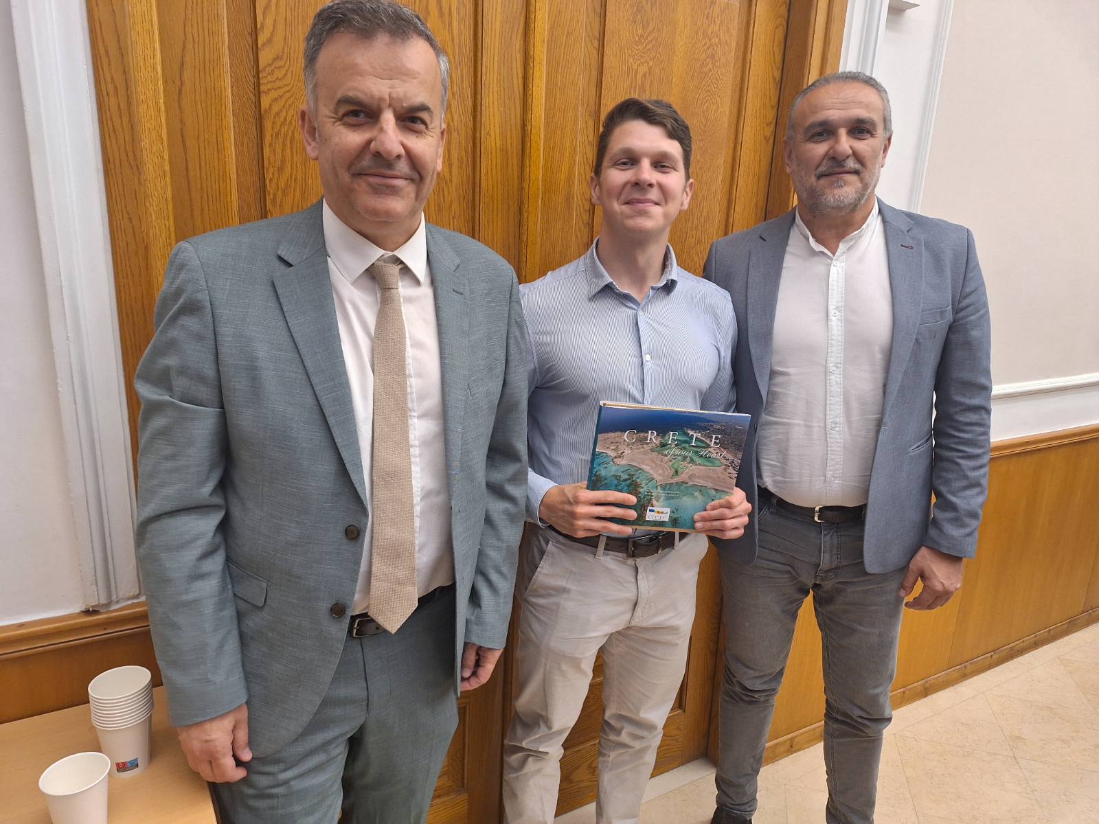 Στη συνάντηση συμμετείχαν εκτός από τα στελέχη της εταιρίας , ο Αντί περιφερειάρχης Επιχειρηματικότητας Μιχάλης Βάμβουκας, ο Εκτελεστικός Διευθυντής της Περιφέρειας Κρήτης κ. Νίκος Ραπτάκης , ο πρόεδρος του Δ.Σ του ΙΤΕ , καθηγητής Βασίλειος Χαρμανδάρης, ο γενικός διευθυντής πρωτογενούς τομέα της Περιφέρειας Κρήτης , Δρ. Κωνσταντίνος Υψηλάντης, η ειδική σύμβουλος της Περιφέρειας Κρήτης κ. Ερμιόνη Γιαλύτη, ο ερευνητής του Ινστιτούτου Πληροφορικής του ΙΤΕ κ. Γιώργος Τζαγκαράκης , η ειδική σύμβουλος κ. Έλλη Κοσμαδάκη , εκπροσωπώντας τον Αντι-Περιφέρειαρχη Αγροτικής Οικονομίας κ. Σταύρο Τζεδάκη και ο ειδικός σύμβουλος Παναγιώτης Ιγνατιάδης.