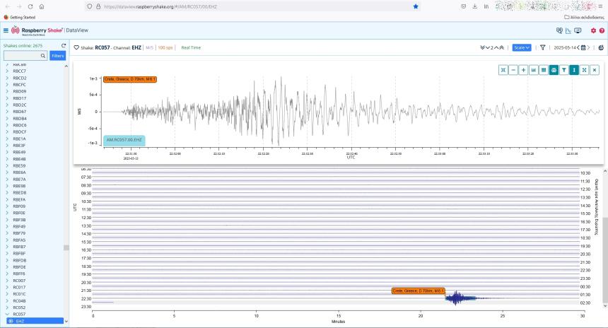 «Σεισμός 6,1 R, από το σχολικό σεισμογράφο του Εργαστηρίου ΦΕ στο 9ο ΔΣ Ρεθύμνου (RaspberyShake RC057), επίκεντρο ανατολικά της Κρήτης (165 Km από Ηράκλειο), περίπου 30 χιλιόμετρα νότια από την Κάσο, βάθος ~70 Km », δήλωσε ο κ. Τσαγλιώτης.