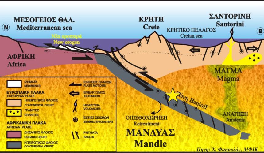 Σε ανάρτηση του στα Μέσα Κοινωνικής Δικτύωσης Έγραψε: "Ο ισχυρός σεισμός που μας κτύπησε το πρωί ήταν ένας παρόμοιος σεισμός με αυτόν που έγινε πριν μερικές εβδομάδες τη θάλασσα της Σητείας. Είναι ένας ενδιαμέσου βάθους σεισμός πάνω στη βυθιζόμενη, κάτω απο την Κρήτη, Αφρικανικά πλάκα (κίτρινο αστέρι), γι αυτό και έγινε αισθητός σε μεγάλες περιοχές, απ ότι φαίνεται και στη βόρεια Αφρική.