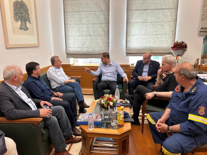 Σύσκεψη πραγματοποιήθηκε σήμερα στην Περιφέρεια Κρήτης παρουσία του Υπουργού Κλιματικής Κρίσης και Πολιτικής Προστασίας Γιάννη Κεφαλογιάννη και του Περιφερειάρχη Κρήτης Σταύρου Αρναουτάκη, με αφορμή τον σεισμό που σημειώθηκε νωρίς το πρωί στη θαλάσσια περιοχή της ανατολικής Κρήτης.