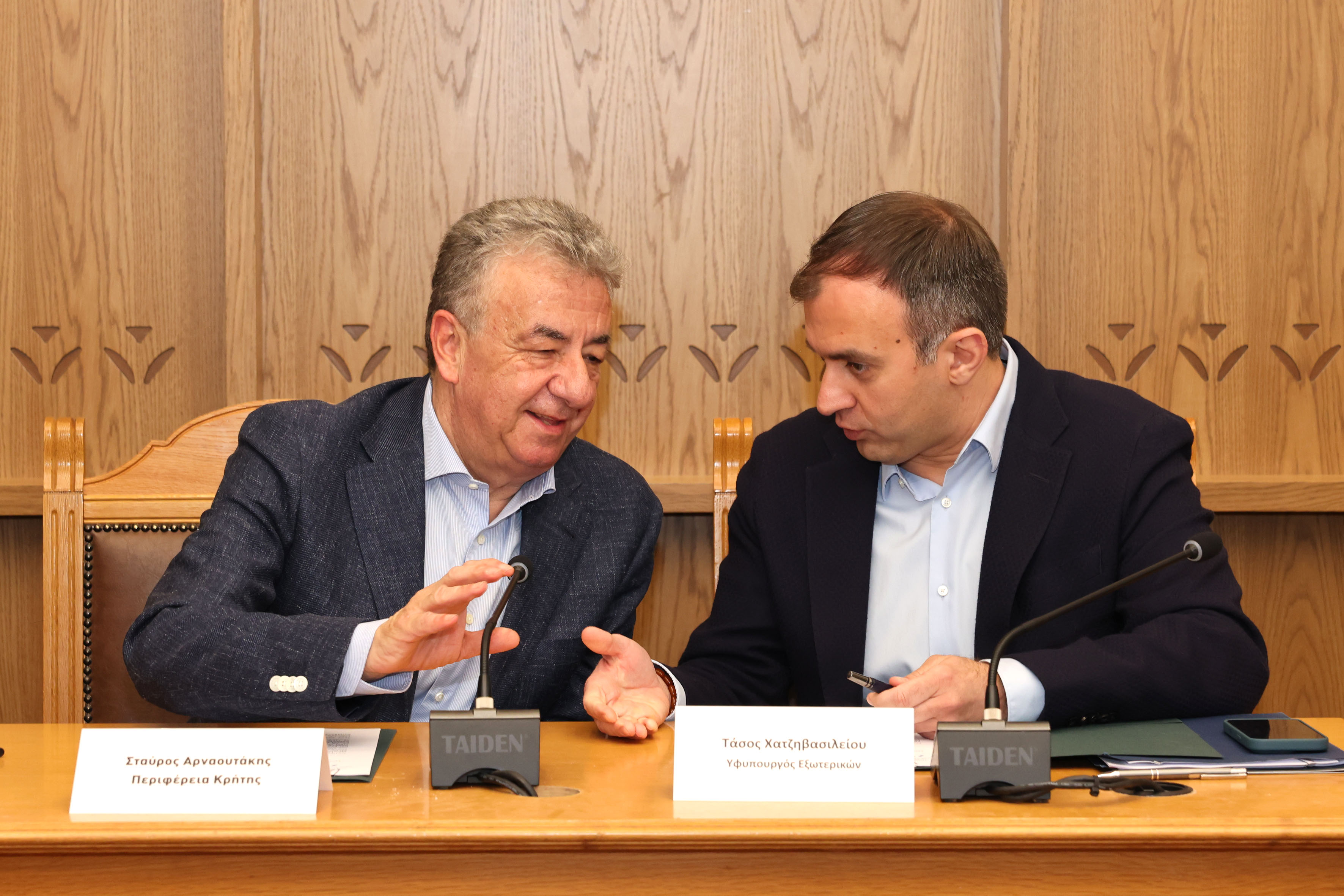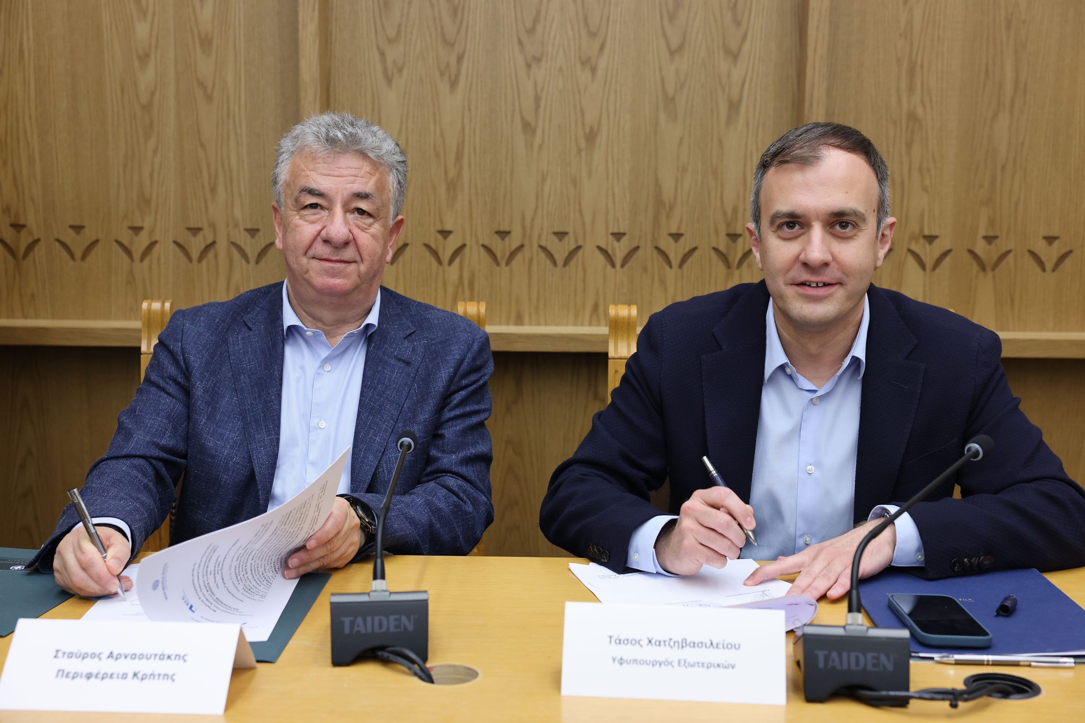 Ο Υφυπουργός Εξωτερικών, αρμόδιος για την Οικονομική Διπλωματία και Εξωστρέφεια, κ. Τάσος Χατζηβασιλείου, υπέγραψε Μνημόνιο Συνεργασίας για τη λειτουργία Γραφείου Εξωστρέφειας στην Περιφέρεια Κρήτης, στο περιθώριο της 9ης Συνεδρίασης του Συμβουλίου Εξωστρέφειας, την Πέμπτη 5 Ιουνίου 2025 στο Ηράκλειο. Η συνεδρίαση διεξήχθη υπό την προεδρία του Γενικού Γραμματέα Διεθνών Οικονομικών Σχέσεων και Εξωστρέφειας και Προέδρου της Enterprise Greece, κ. Δημήτρη Σκάλκου, με τη συμμετοχή του Περιφερειάρχη Κρήτης, κ. Σταύρου Αρναουτάκη.