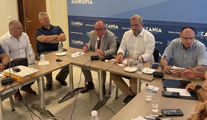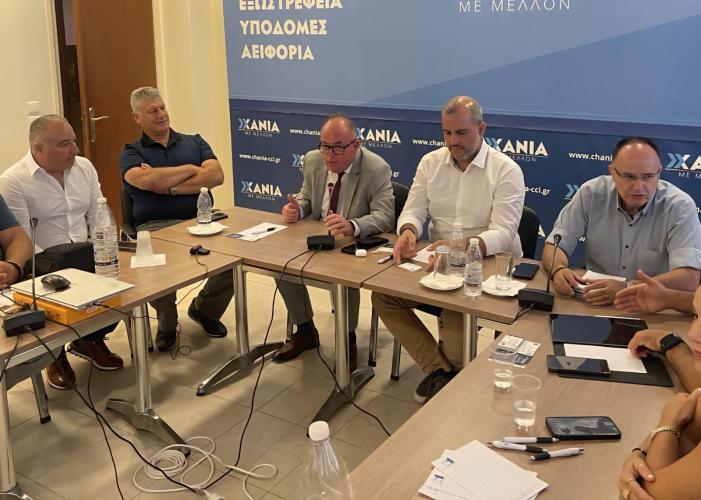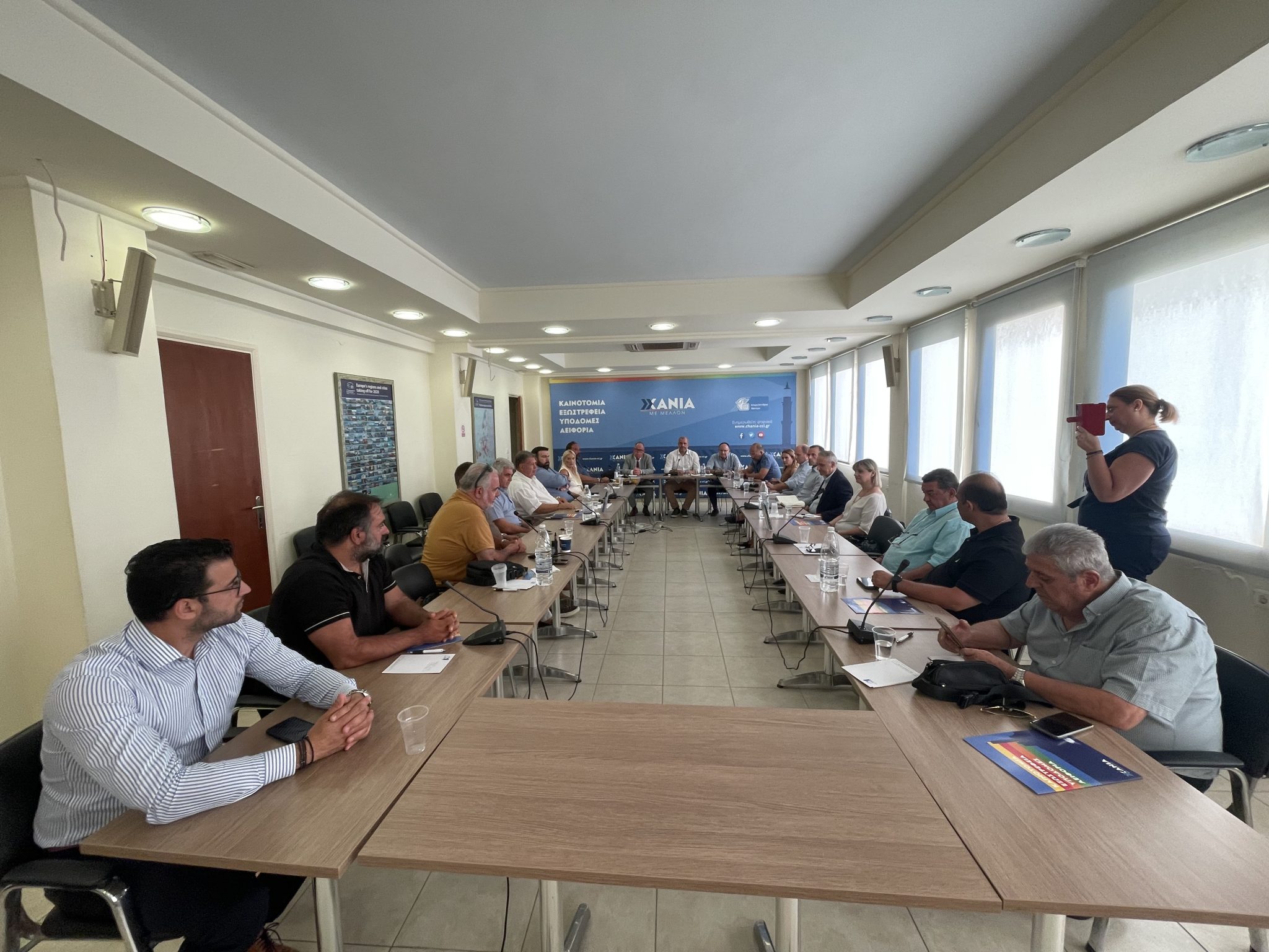 Πραγματοποιήθηκε τη Δευτέρα 28 Ιουλίου σύσκεψη εργασίας στο Επιμελητήριο Χανίων μεταξύ των επικεφαλής των θεσμικών φορέων της Κρήτης, της Θεσσαλίας και εκπροσώπων της Διοίκησης της αεροπορικής εταιρίας “Sky Express”. Στο επίκεντρο της διευρυμένης συνεργασίας, η οποία πραγματοποιήθηκε με τη συμμετοχή του Προέδρου του Περιφερειακού Επιμελητηριακού Συμβουλίου Κρήτης - Π.Ε.Σ.Κ. και του Επιμελητηρίου Ρεθύμνης κ. Γιώργου Γιακουμάκη και του Α’ Αντιπροέδρου του Επιμελητηρίου κ. Κωνσταντίνου Σπυριδάκη, τέθηκαν οι αναγκαίες λειτουργικές, επιχειρηματικές και οικονομικές προϋποθέσεις, οι οποίες θα καταστήσουν εφικτή την ένταξη της διασύνδεσης των αεροδρομίων των Χανίων και του Βόλου στο πτητικό πρόγραμμα του 2026.