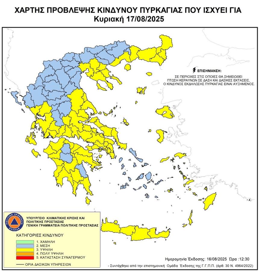 Σύμφωνα με τον χάρτη που εκδίδει το αρμόδιο υπουργείο στο… κίτρινο βρίσκονται και οι τέσσερις νομοί της Κρήτης.