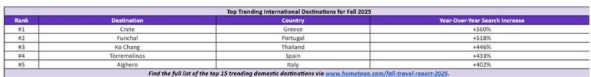 Οι Αμερικανοί που σχεδιάζουν διεθνή ταξίδια δίνουν προτεραιότητα σε νησιωτικούς προορισμούς στην Ευρώπη και την Ασία, όπως αποκαλύπτει η Έκθεση Ταξιδιών Φθινοπώρου 2025 της HomeToGo.