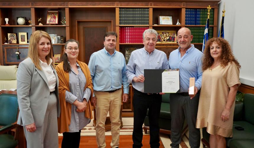 Οι ιδιοκτήτες του βραβευμένου εστιατορίου με έδρα το Ηράκλειο, ενημέρωσαν τον Περιφερειάρχη για τη σημαντική αυτή βράβευση από την Ευρωπαϊκή Επιτροπή στο πλαίσιο των Ευρωπαϊκών Βιολογικών Βραβείων (EU Organic Awards) και μετέφεραν το βραβείο που παρέλαβαν στην επίσημη τελετή απονομής στις Βρυξέλλες.