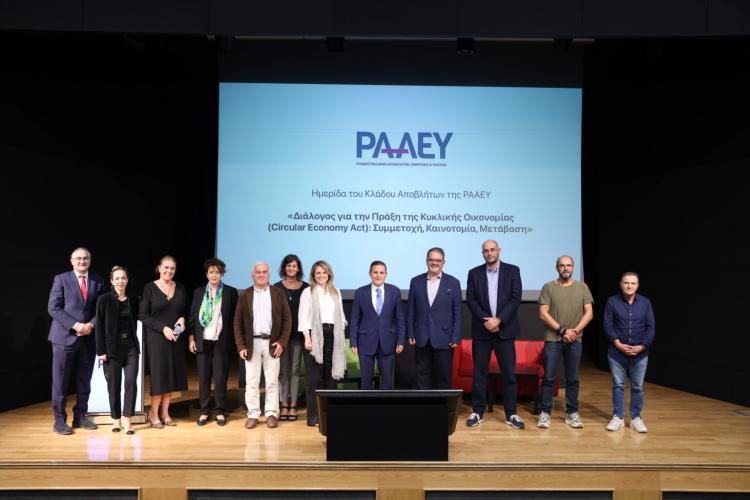Η Ημερίδα διεξήχθη στο πλαίσιο της δημόσιας διαβούλευσης που διενεργεί ο Κλάδος Αποβλήτων της ΡΑΑΕΥ αναφορικά με τη νέα Πράξη για την Κυκλική Οικονομία (Circular Economy Act – CEA) της Ευρωπαϊκής Επιτροπής.
