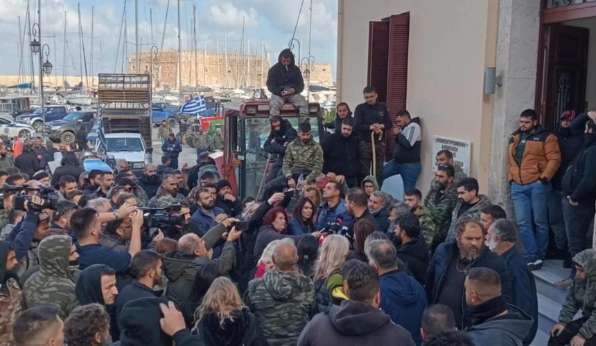 Οι αγροτοκτηνοτρόφοι εξακολουθούν να βρίσκονται στο κτίριο της Αποκεντρωμένης Διοίκησης Κρήτης, συνεχίζοντας για τρίτη ημέρα τις κινητοποιήσεις τους. Παραγωγοί του πρωτογενούς τομέα από το Ηράκλειο, το Ρέθυμνο και το Λασίθι πέρασαν όλη τη νύχτα στο σημείο, δηλώνοντας αποφασισμένοι να συνεχίσουν τις δράσεις τους για όσο χρονικό διάστημα χρειαστεί.
