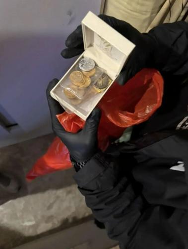 Κατά τις έρευνες που πραγματοποιήθηκαν σε οικίες, Κέντρο Υποδοχής Δηλώσεων (Κ.Υ.Δ.), λογιστικό γραφείο, και οχήματα, βρέθηκαν, μεταξύ άλλων και κατασχέθηκαν: -35.750,00- ευρώ, μία ράβδος χρυσού, -19- χρυσές λίρες, -3- χρυσές αλυσίδες, πλήθος σχετιζόμενων εγγράφων, πλήθος τραπεζικών καρτών, -14- κινητά τηλέφωνα, -2- φορητοί Η/Υ, μία φορητή ταμπλέτα, μία εξωτερική φορητή μονάδα αποθήκευσης (usb).