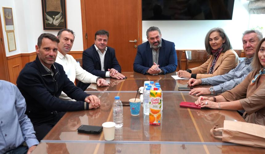 Συνάντηση με την Πρόεδρο του ΣΕΓΑΣ Σοφία Σακοράφα είχαν σήμερα στην Περιφέρεια ο αναπληρωτής Περιφερειάρχη Γιώργος Πιτσούλης, και οι Αντιπεριφερειάρχες Ηρακλείου Νίκος Συριγωνάκης κα Αθλητισμού Λεωνίδας Τερζής στο πλαίσιο συνάντησης εργασίας με αντικείμενο την ανάπτυξη του κλασικού αθλητισμού.