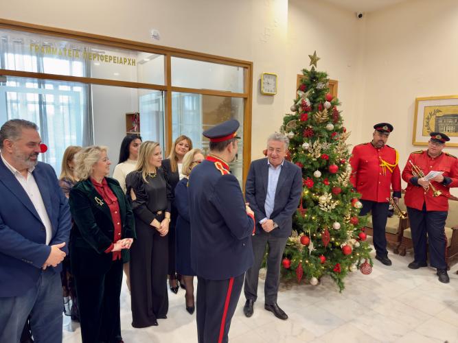 Στον Περιφερειάρχη ευχήθηκαν επίσης Έφεδροι Αξιωματικοί από τη Σχολή Εφέδρων Αξιωματικών Πεζικού (ΣΕΑΠ) Ηρακλείου, τονίζοντας τους ισχυρούς δεσμούς της Περιφέρειας με τις Ένοπλες Δυνάμεις με μουσική και κάλαντα της Κρήτης.