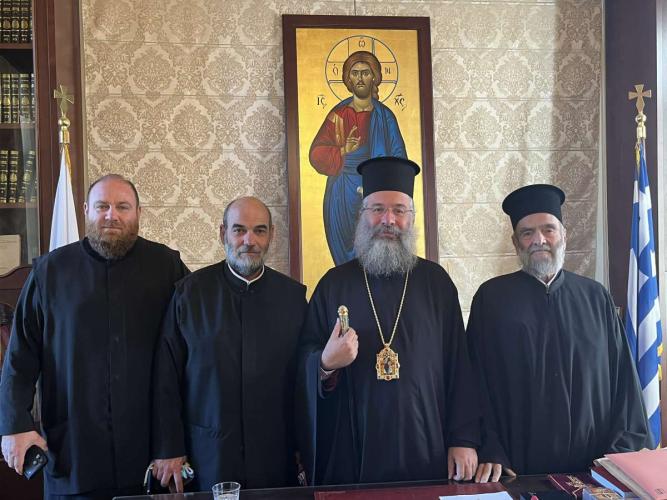 Με πολλή χαρά ο Σεβασμιώτατος Μητροπολίτης Ρεθύμνης και Αυλοποτάμου κ. Πρόδρομος, συμπαραστατούμενος από τον Αιδεσιμολ. Πρωτ. Νικόλαο Νικηφόρο, Γενικό Αρχιερατικό Επίτροπο, και κληρικούς της Ιεράς Μητροπόλεως, την Τετάρτη, 31η Δεκεμβρίου 2025, παραμονή της Πρωτοχρονιάς, στα γραφεία της Μητροπόλεως, δέχθηκε εόρτιες επισκέψεις και άκουσε τα πρωτοχρονιάτικα κάλαντα.