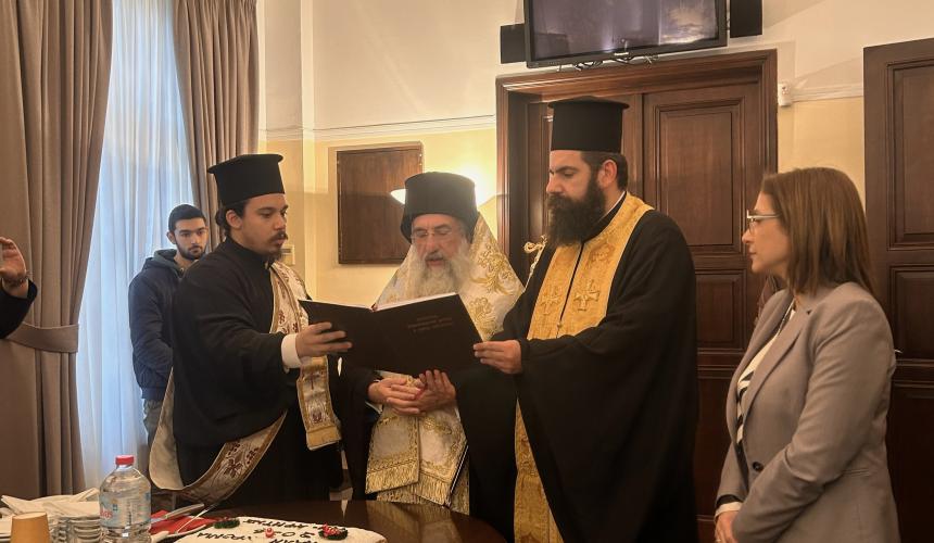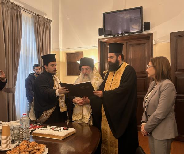 Με τις ευχές και την ευλογία του Αρχιεπισκόπου Κρήτης κ.κ. Ευγενίου, πραγματοποιήθηκε στο κεντρικό κτίριο της Αποκεντρωμένης Διοίκησης Κρήτης στο Ηράκλειο η τελετή κοπής της βασιλόπιτας και του Αγιασμού για το νέο έτος 2026. Στην εκδήλωση παρευρέθηκε το σύνολο των Προϊσταμένων των οργανικών μονάδων του φορέα της Αποκεντρωμένης Διοίκησης, από όλες τις Υπηρεσίες της Κρήτης.