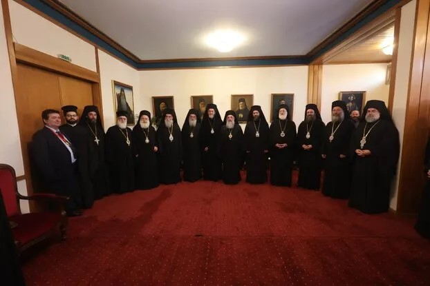 H Ιερά Σύνοδος της Εκκλησίας της Κρήτης με τα νέα της μέλη και την Εξαρχία του Οικουμενικού Θρόνου μετά την τέλεση της διαδικασίας των Μικρών Μηνυμάτων από τους Εψηφισμένους νέους Μητροπολίτες.