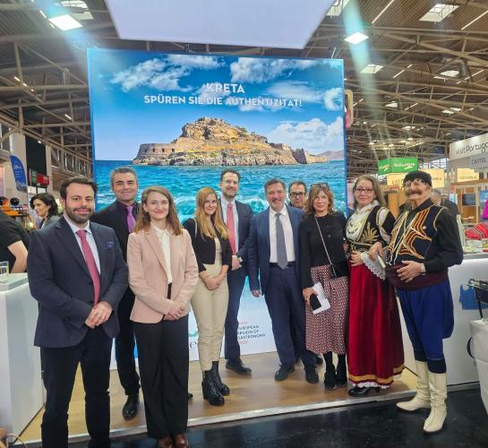 Την Περιφέρεια Κρήτης εκπροσώπησαν ο Δρ. Κυριάκος Κώτσογλου, Αντιπεριφερειάρχης Τουρισμού Κρήτης, που έδωσε και την press conference, ο Εντεταλμένος Περιφερειακός Σύμβουλος Τουρισμού για την Π.Ε. Λασιθίου Μιχάλης Κλώντζας, ο Νίκος Αλεξάκης, Προϊστάμενος Διεύθυνσης Τουρισμού Κρήτης, η κ. Ελένη Βουγιουκαλάκη, Προϊσταμένη Τμήματος Τουρισμού της Π.Ε. Ηρακλείου, η Αλεξάνδρα Γλυκάκη, στέλεχος του Τμήματος Σχεδιασμού και Ανάπτυξης της Π.Ε. Ηρακλείου και η Ιωάννα Τοπαλίδου, Διπλωματούχος Γερμανόγλωσση ξεναγός. Την αποστολή της Περιφέρειας Κρήτης συνέδραμε και ο Κώστας Βασιλάκης, εκπρόσωπος του Δήμου Σητείας, ενώ ιδιαίτερη μνεία στο Σύλλογο Κρητών Νυρεμβέργης και την Γαρυφαλλιά Βασιλάκου που έκαναν το ταξίδι από Νυρεμβέργη για να συνδράμουν.