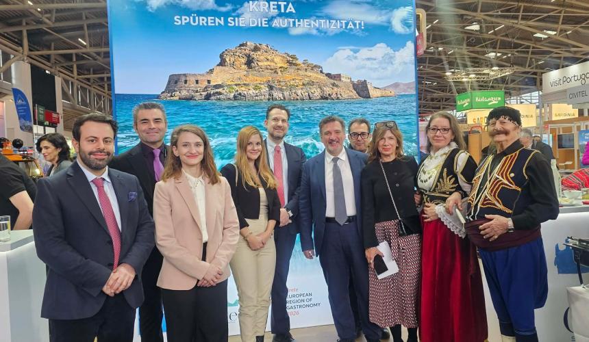 Κάτω από αυτό το πρίσμα, οι πύλες της έκθεσης δεν άνοιξαν για την Περιφέρεια Κρήτης στο Εκθεσιακό Κέντρο του Μονάχου από 18 έως τις 22 Φεβρουαρίου 2026, αλλά από τις 10 Φεβρουαρίου, μια εβδομάδα νωρίτερα και στον εμβληματικό χώρο της Ελληνοπρεπούς Γλυπτοθήκης, όπου δημοσιογράφοι και επίσημοι προσκεκλημένοι είχαν την ευκαιρία να ενημερωθούν για την έκθεση και την συμμετοχή της Κρήτης, ως τιμώμενης Περιφέρειας.