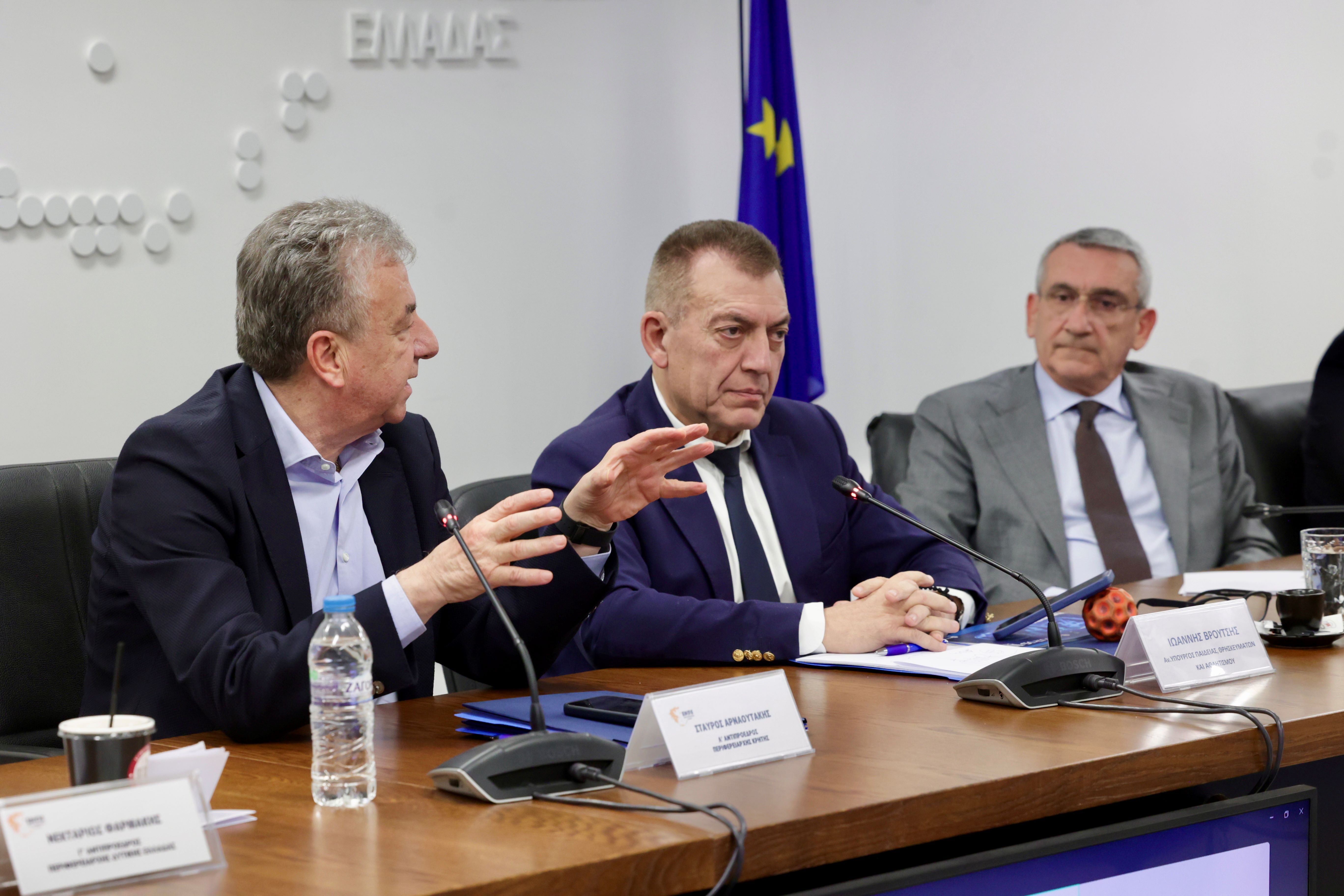 «Η Περιφέρεια Κρήτης στηρίζει έμπρακτα τον αθλητισμό και τη νεολαία του νησιού μας. Με την αξιοποίηση καινοτόμων εφαρμογών, συνεχίζουμε να διεκδικούμε και να υλοποιούμε έργα που αναβαθμίζουν τις αθλητικές υποδομές και ανταποκρίνονται στις πραγματικές ανάγκες των τοπικών μας κοινωνιών», δήλωσε ο Σταύρος Αρναουτάκης, μετά τη συνεδρίαση.