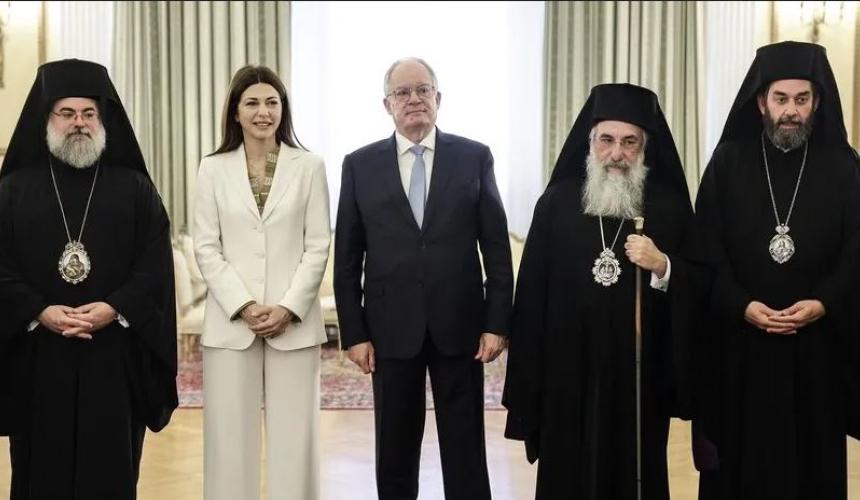 Οι νέοι Μητροπολίτες Κυδωνίας και Αποκορώνου, Τίτος, και Λάμπης, Συβρίτου και Σφακίων, Ιωακείμ, έδωσαν σήμερα τη διαβεβαίωση τους ενώπιον του Προέδρου της Δημοκρατίας, Κ. Τασούλα παρουσία του Αρχιεπισκόπου Κρήτης και της Υπουργού Παιδείας, Σ. Ζαχαράκη.