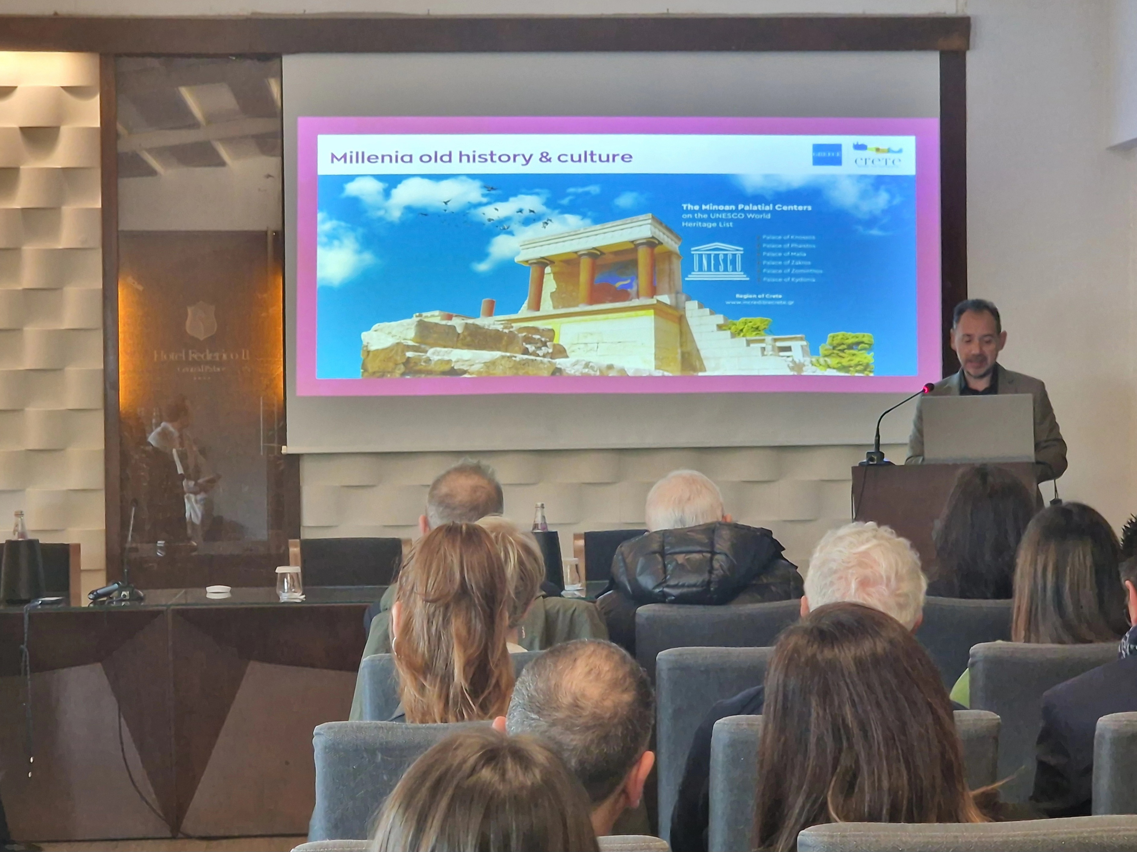 Η Περιφέρεια Κρήτης συμμετείχε στο στοχευμένο Roadshow “GRECIA : Un mondo di destinazioni” στη Σικελία της Ιταλίας, με δύο κεντρικές εκδηλώσεις (B2B workshops) στην Κατάνια και στο Παλέρμο στο πλαίσιο του προγράμματος τουριστικής προβολής για το 2026.