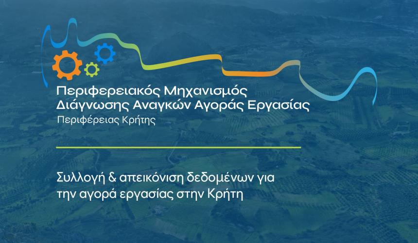 Η Περιφέρεια Κρήτης, σε συνεργασία με το Πανεπιστήμιο Κρήτης, υλοποιεί το έργο «Περιφερειακός Μηχανισμός Διάγνωσης των Αναγκών της Αγοράς Εργασίας Περιφέρειας Κρήτης». Πρόκειται για έναν καινοτόμο ερευνητικό μηχανισμό, τον πρώτο στο είδος του στην Ελλάδα, που στοχεύει στην αποτύπωση της εξέλιξης της αγοράς εργασίας στο νησί, τον εντοπισμό παθογενειών και τη διαμόρφωση στοχευμένων παρεμβάσεων κατάρτισης.