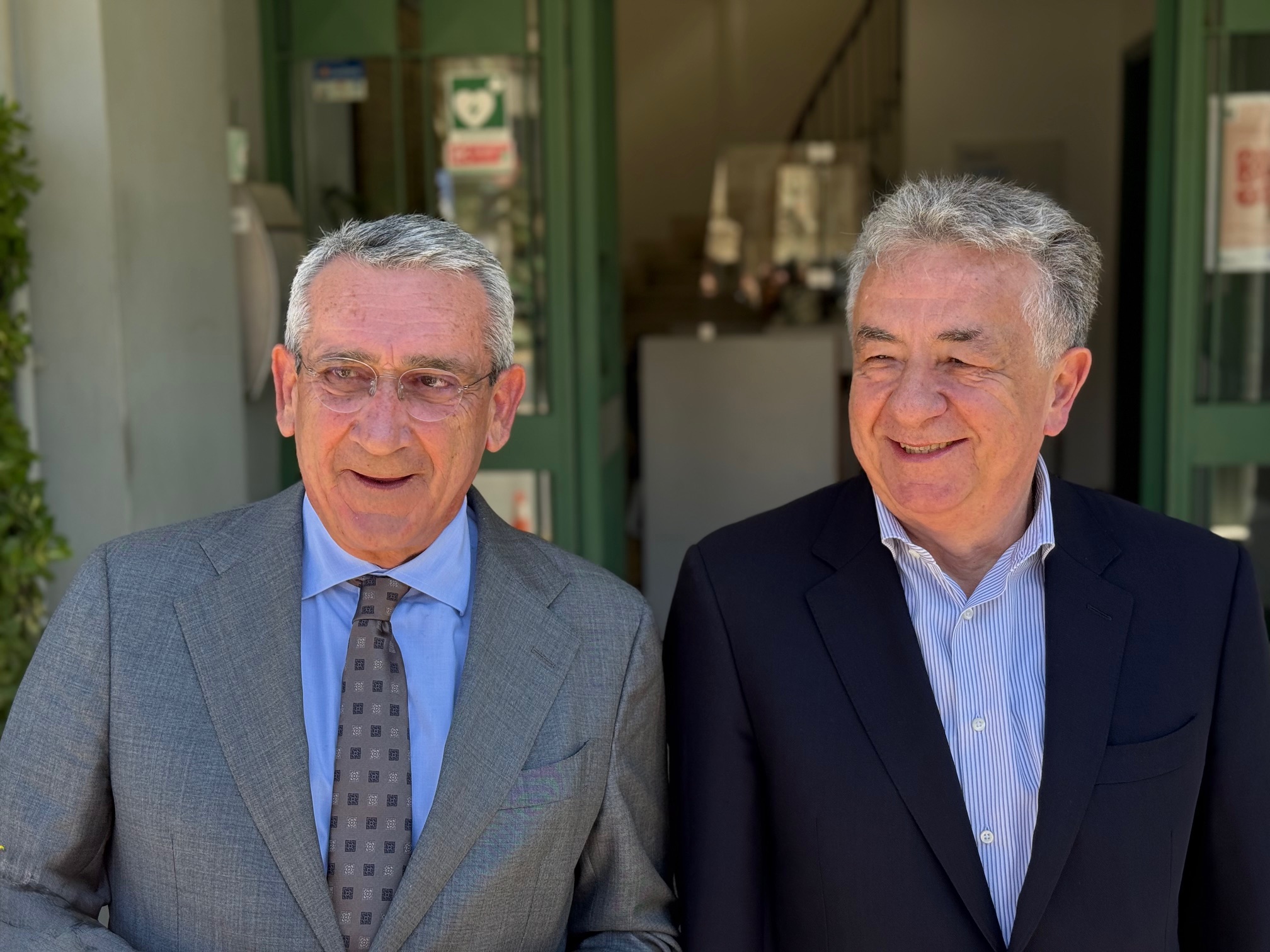 Ο Περιφερειάρχης Κρήτης Σταύρος Αρναουτάκης καλωσορίζοντας τον Πρόεδρο της ΕΝΠΕ και τον Υπουργό στην Κρήτη,
