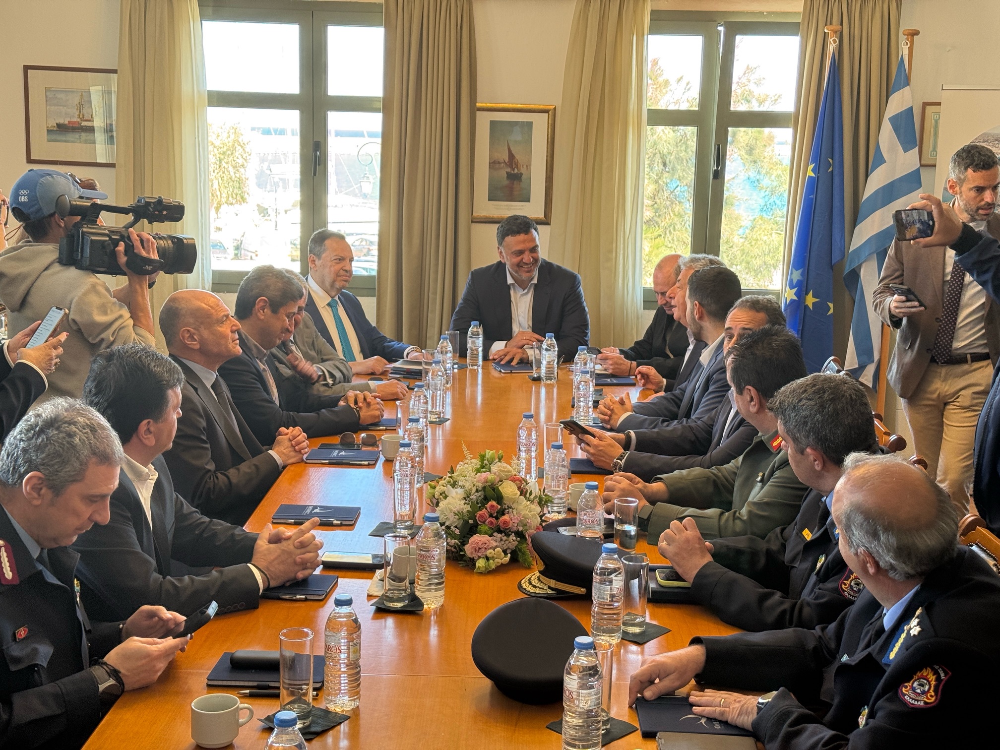 Ο Σταύρος Αρναουτάκης εξέφρασε τις θερμές του ευχαριστίες προς τους άνδρες και τις γυναίκες του Λιμενικού Σώματος και της Αστυνομίας, σημειώνοντας ότι επωμίζονται ένα τεράστιο βάρος στη διαχείριση των ροών.