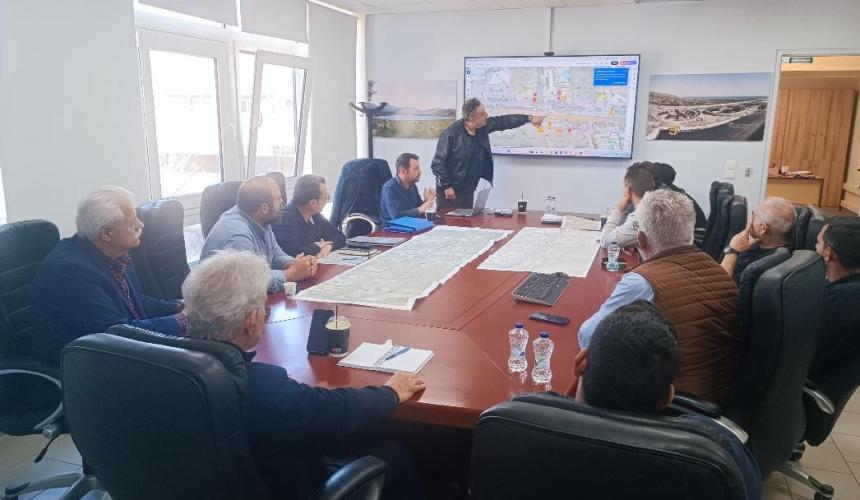 Σύσκεψη εργασίας πραγματοποιήθηκε την Τρίτη 28 Απριλίου 2026, στο γραφείο του Διευθύνοντος Συμβούλου του Οργανισμού Ανάπτυξης Κρήτης (Ο.Α.Κ.) κ. Άρη Παπαδογιάννη, με αντικείμενο την πορεία των παρεμβάσεων που βρίσκονται σε εξέλιξη στον Βόρειο Οδικό Άξονα Κρήτης (ΒΟΑΚ), στο πλαίσιο του έργου ενίσχυσης της οδικής ασφάλειας στο τμήμα Πετρές – Γεωργιούπολη.