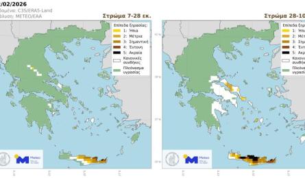 Σε καθεστώς ξηρασίας η Κρήτη – Καμπανάκι από τα στοιχεία του METEO Οι πρόσφατοι χάρτες του Meteo και του Εθνικού Αστεροσκοπείου Αθηνών επιβεβαιώνουν αυτό που βιώνουν οι πολίτες της Κρήτης. Το μεγαλύτερο μέρος του... 24.02.2026 10:45