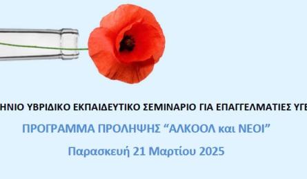 Πανελλήνιο Εκπαιδευτικό Σεμινάριο Επιμόρφωσης Επαγγελματιών Υγείας από την 7η Υ.ΠΕ Κρήτης : «ΠΡΟΓΡΑΜΜΑ ΠΡΟΛΗΨΗΣ “ΑΛΚΟΟΛ και ΝΕΟΙ”» Την Παρασκευή 21 Μαρτίου 2025 κατά τις ώρες 8:30 π.μ. – 15:00 μ.μ. θα πραγματοποιηθεί στην 7η Υγειονομική Περιφέρεια Κρήτης το πανελλήνιο... 20.03.2025 13:09