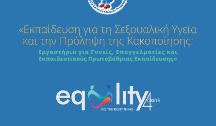 Εκπαιδευτικό πρόγραμμα για τη Σεξουαλική Υγεία παιδιών και την πρόληψη της κακοποίησης Η Περιφέρεια Κρήτης, μέσω του Αυτοτελούς Γραφείου Ισότητας και η Α.ΞΕ.Π.Τ. (Ασφαλή Ξένοιαστα Παιδιά Τώρα) υλοποιούν σε όλη την Κρήτη το Εκπαιδευτικό... 13.10.2025 19:47