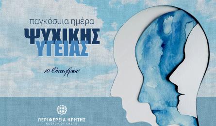 Παγκόσμια Ημέρα Ψυχικής Υγείας, πρόληψη, ευαισθητοποίηση και έγκαιρη υποστήριξη Με αφορμή την Παγκόσμια Ημέρα Ψυχικής Υγείας, η Περιφέρεια Κρήτης αναδεικνύει τη σημασία της πρόληψης, της ευαισθητοποίησης και της... 10.10.2025 12:10