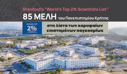 Πανεπιστημίο Κρήτης: 85 μέλη του στη λίστα των κορυφαίων επιστημόνων παγκοσμίως Συνολικά 85 μέλη της ακαδημαϊκής κοινότητας του Πανεπιστημίου Κρήτης (καθηγητές, διδάσκοντες και ερευνητές) περιλαμβάνονται στη λίστα World's Top 2%... 07.10.2025 17:49