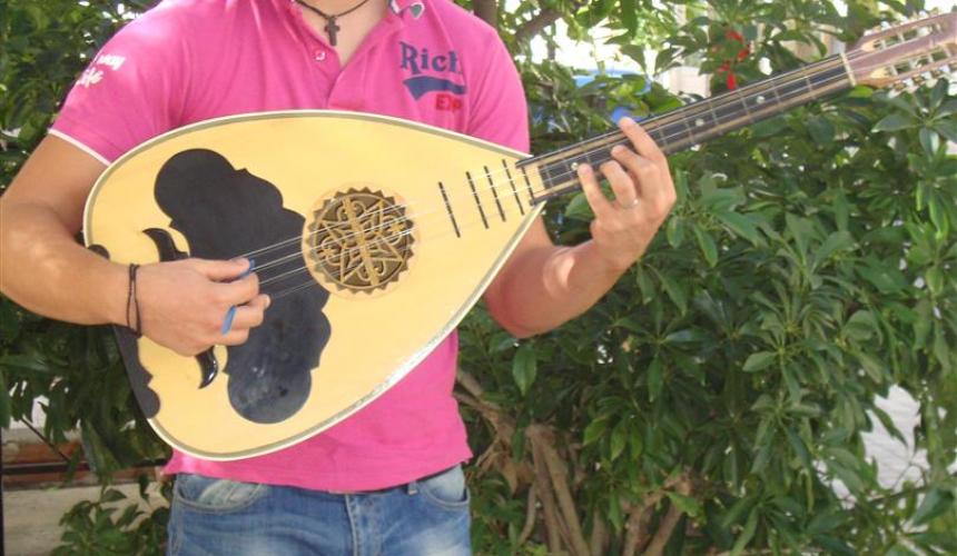 Το λαούτο του είναι του εξαιρετικού κατασκευαστή Μανόλη Κεραμιανάκη...