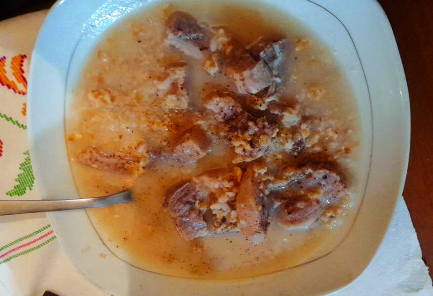 Αν έχει πιεί το νερό του προσθέτουμε λίγο ακόμα και ρίχνουμε τον ξινόχοντρο μαζί με το ρύζι. Βράζουμε για 15 λεπτά ακόμα μέχρι να χυλώσει το φαγητό μας.