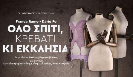 «Όλο σπίτι, κρεβάτι και εκκλησία» των Ντάριο Φο και Φράνκα Ράμε στο The Garage Το The Garage, με μεγάλη χαρά, φιλοξενεί το Σάββατο 3 Ιουνίου στις 21.30, τους “Θεατρίνους” στο έργο «Όλο σπίτι, κρεβάτι και εκκλησία» των... 26.05.2023 12:52