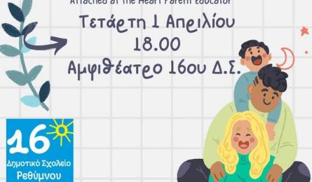 "Συναισθήματα: αυτός ο κόσμος...ο μικρός...ο Μέγας!" στο 16ο Δημοτικό Ρεθύμνου με την Άννα Λυγιά Ο Σύλλογος Γονέων και Κηδεμόνων του 16ου Δημοτικού Σχολείου Ρεθύμνου διοργανώνει μία συνάντηση με την ψυχολόγο - ψυχοθεραπεύτρια - Attached at the... 28.03.2026 10:20